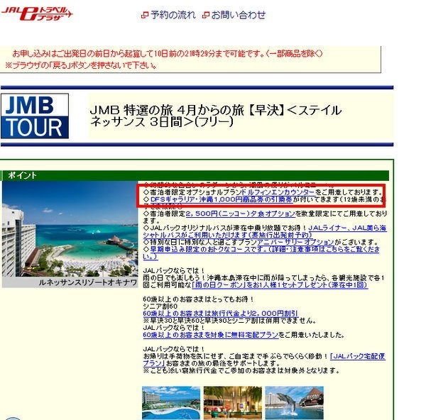 JALパックの『ドルフィンプログラム事前予約特典』についてはこちらのページで詳細をご紹介していますのでご参考にしてください。