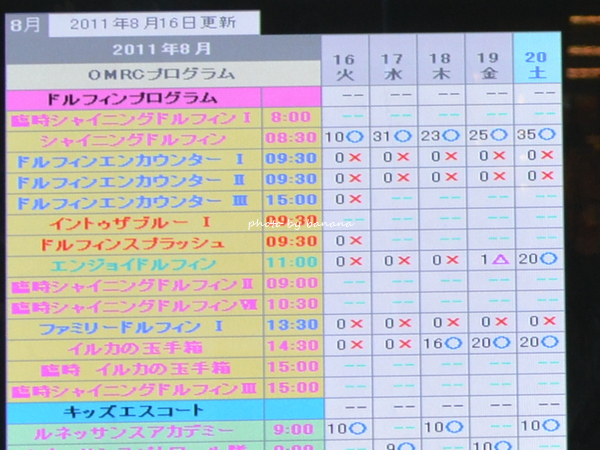 既に予定を入れてしまっていると「2日目はダメ、3日目の午後もダメ」とイルカのプログラムを選択できる時間帯が絞られてしまって、結局体験できなかった、ということにもなりかねません。