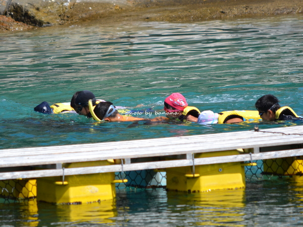 その後、ライフジャケットを付けてイルカが泳いでいるところを観察したり…、