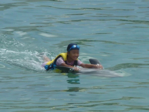 いるかにつかまって、一緒に泳いでもらったりします♪