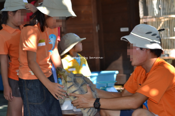 最後には大きなカメの体重を測ったり、動物さんの餌の準備をしたりして終了。