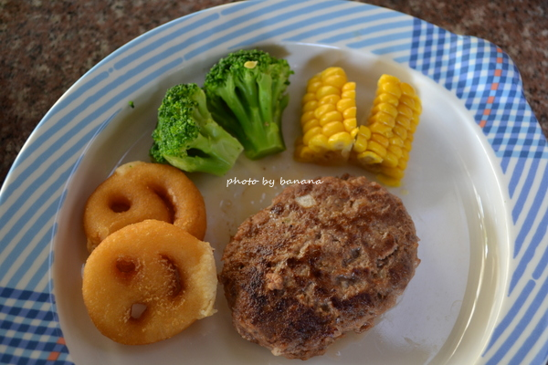 作ってくれるのはハンバーグと付け合わせ。ミンチをこねて…